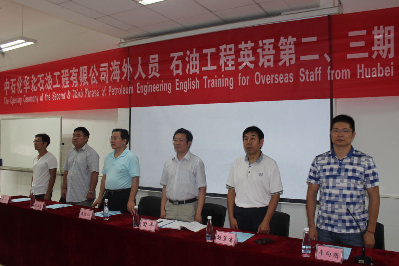 2016年8月23日上午9点,中石化华北石油工程有限公司海外人员石油工程英语第二、三期强化培训班在我校举行。我校党委书记潘留仙、best365体育备用网址院长王江浩、中石化华北石油工程有限公司党委书记田平、中石化华北石油工程有限公司人力资源处副处长刘景富等领导出席了仪式。