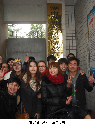 根据教学计划的安排,我院09级音乐教育专业共计28名学生于2011年11月1日至12月1日,在常德市汉寿三中进行为期一月的教育实习,实习取得了圆满成功。