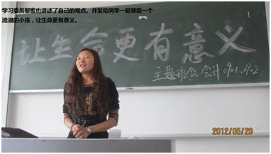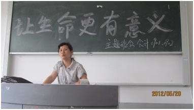 2012年5月31日,学院主题班会评比小组对各班级在5月份所召开的主题班会进行评比,一致认为肖燕老师在5月20日下午组织召开的“让生命更有意义”主题班会在此次活动中胜出。