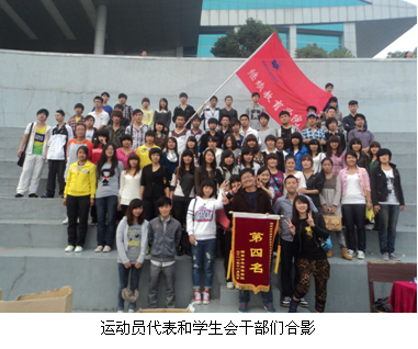 2011年11月,我院派出了22名运动员参加了学校第七届田径运动会19个项目的比赛。在罗之仁院长和胡培丽书记的率领下,通过赛场上运动员们努力拼搏、赛场下学生会干部的紧密配合,获得了团体总分第四名的好成绩。